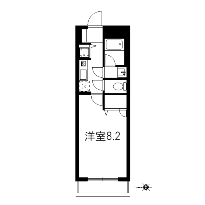 居室が8帖の1Kなので、6帖だと手狭に感じる単身の方にオススメのお部屋です。