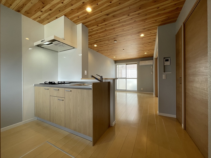 茅ヶ崎柳島海岸にあるこのお部屋は、海まで歩ける穏やかな環境と、前回フルリフォームされて全てが新しく生まれ変わった室内が魅力です。外観は鮮やかな黄色で個性的ですが、一歩室内に入るとグレーのクロスとナチュラルな木目のフローリングが落ち着いた雰囲気を作り出しており、外観からは想像できない心地よい空間が広がっています。キッチンや照明など細部にまでこだわりが感じられ、まるで雑誌の中のようなおしゃれな空間です。