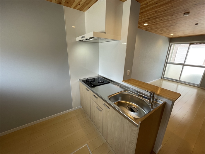 築38年の建物ですが、お部屋は前回全てフルリフォーム済みで新品同様。グレーのクロスが醸し出す落ち着きと、おしゃれさを両立したこの空間で、海のそばの暮らしをぜひ楽しんでいただきたい物件です。